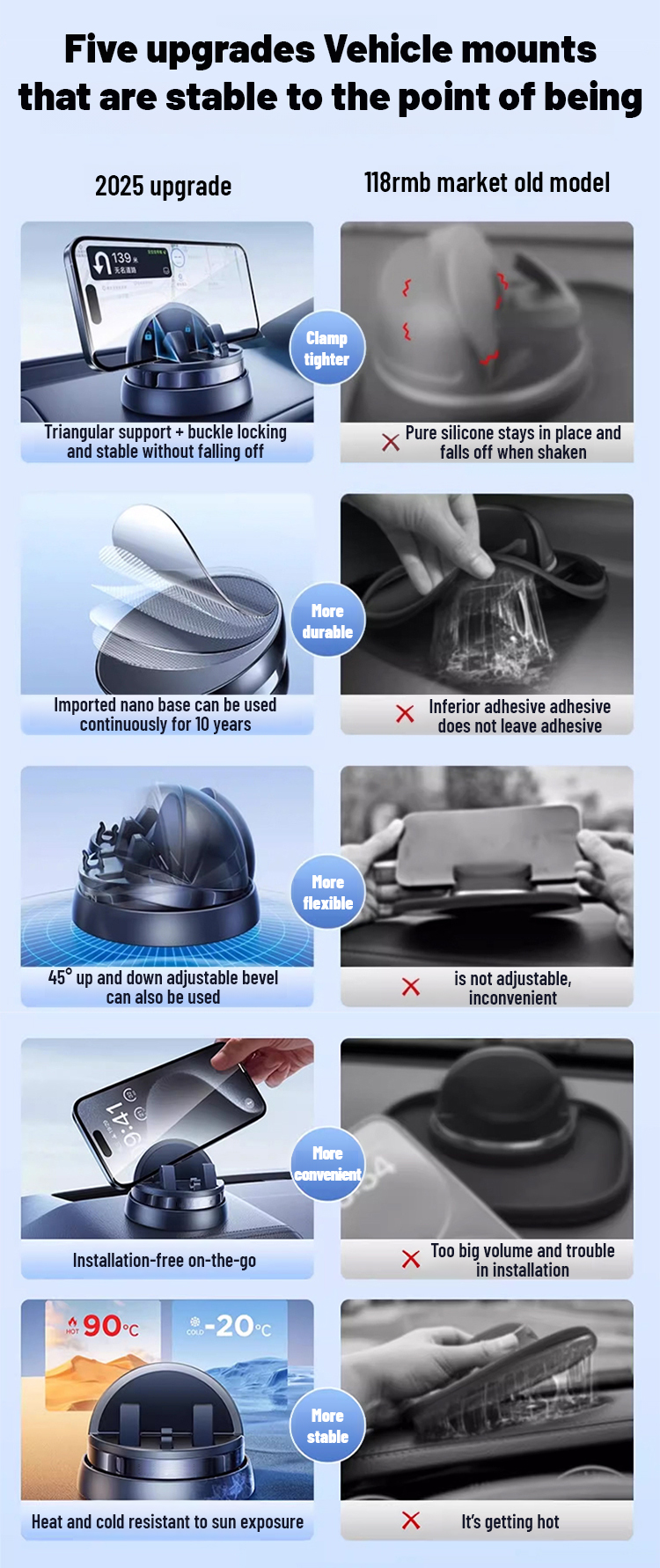 🧲 Ultra-Strong Auto Adsorption | 🔄 360° Smooth Rotation