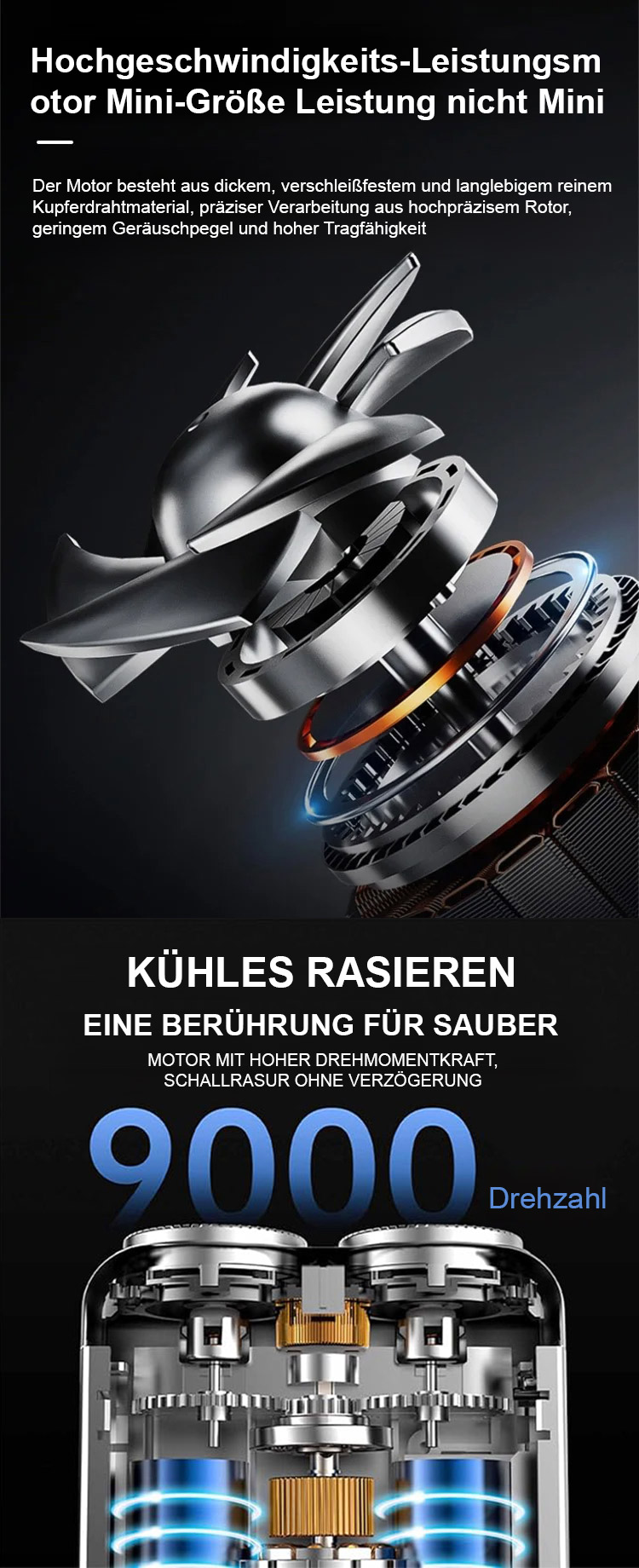 🌀 Zwei-Kopf-Design – erreicht jeden Winkel.