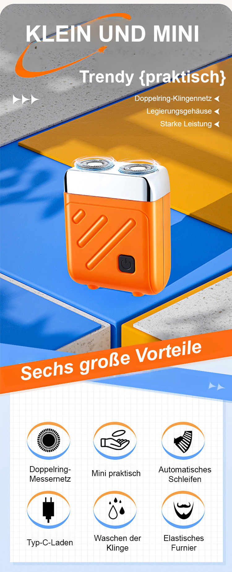 Tragbarer elektrischer Rasierer mit Doppelkopf