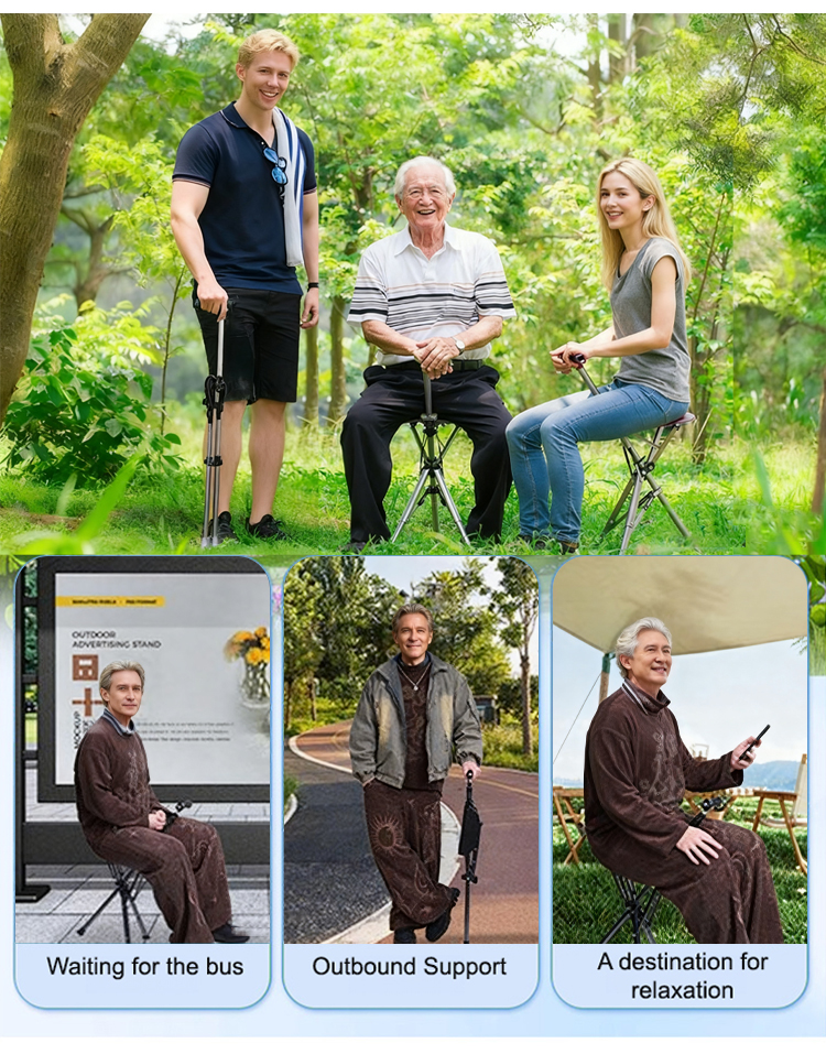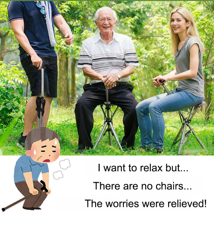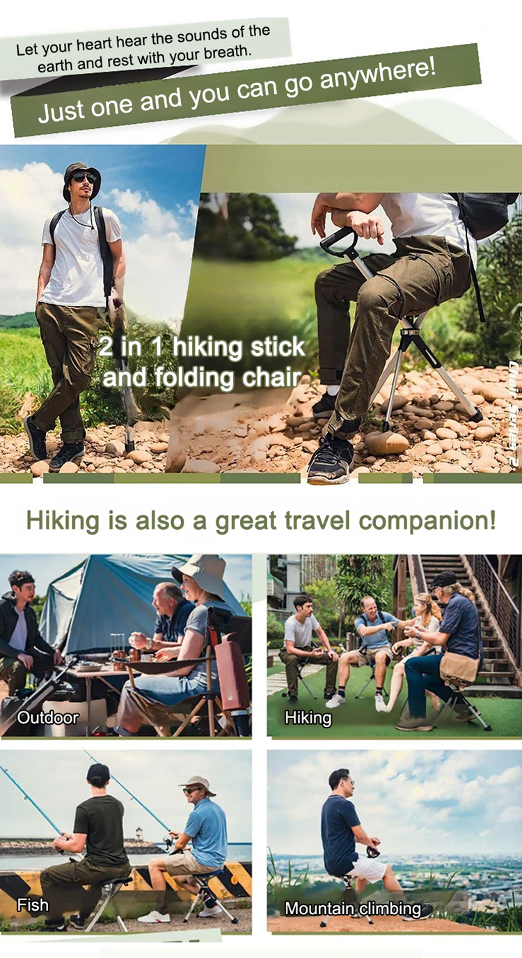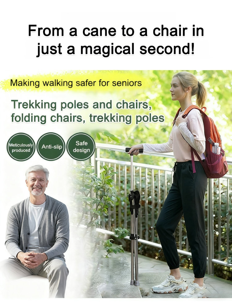 [3 colors optional] Retractable non-slip hiking cane chair