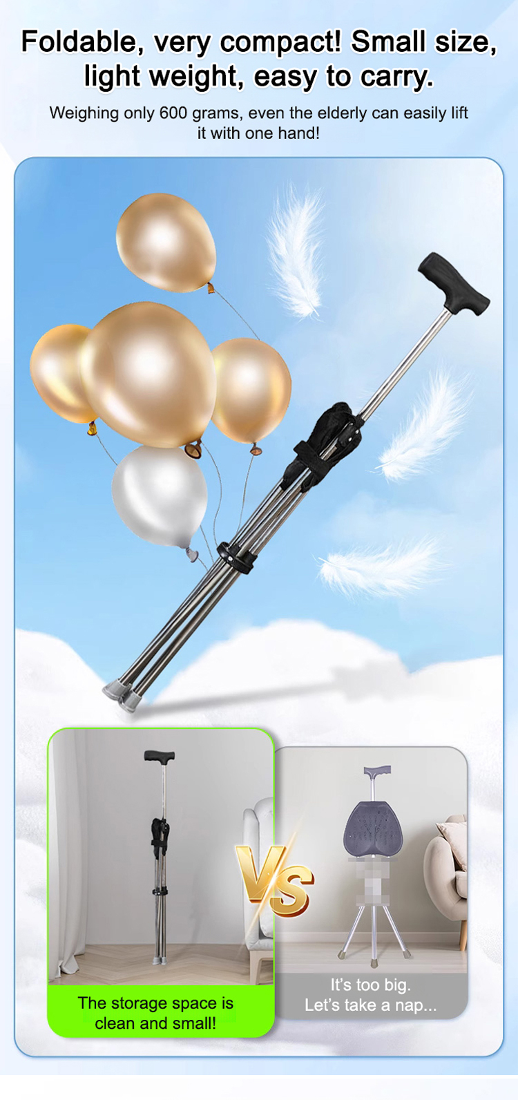 🕶️ Looks like a sleek cane… until you unfold the secret seat.