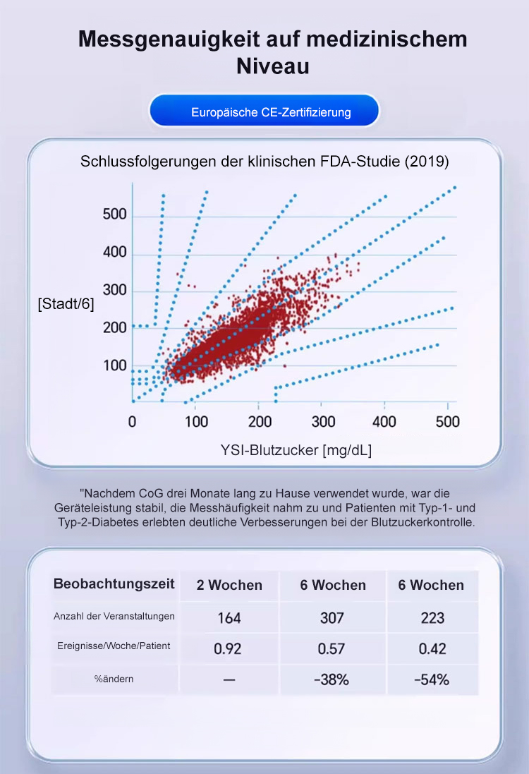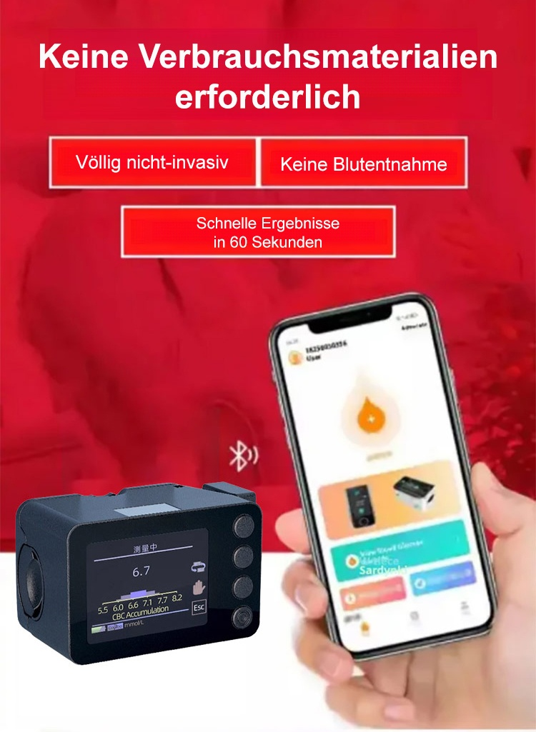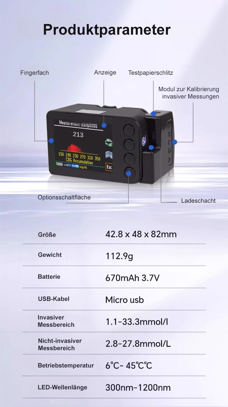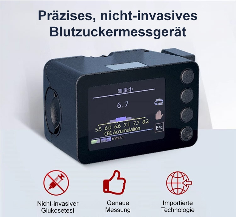 (5-Sekunden-Blutzuckertest, 99 % Genauigkeit) Ein Blutzuckermessgerät mit 55 Patenten