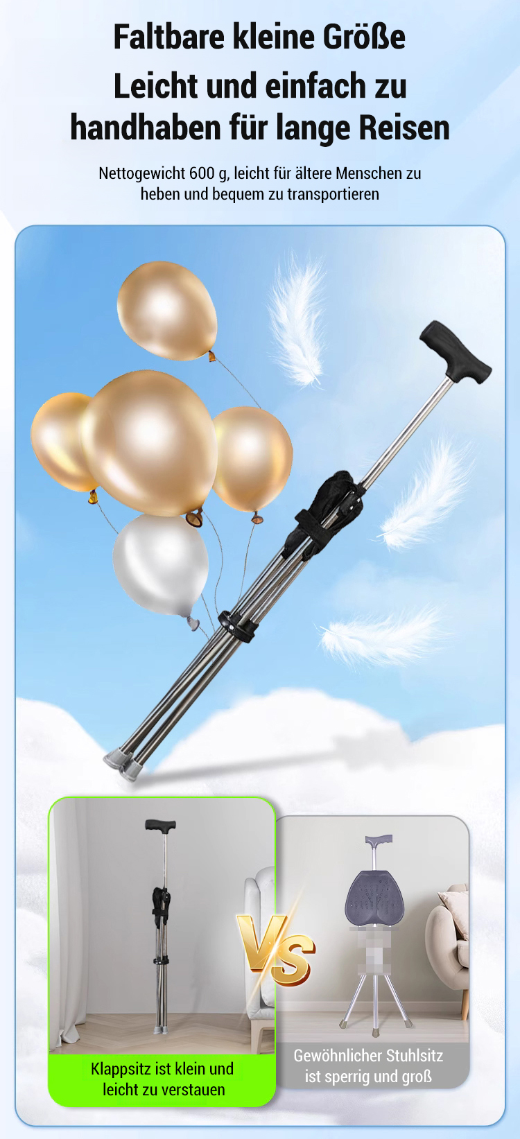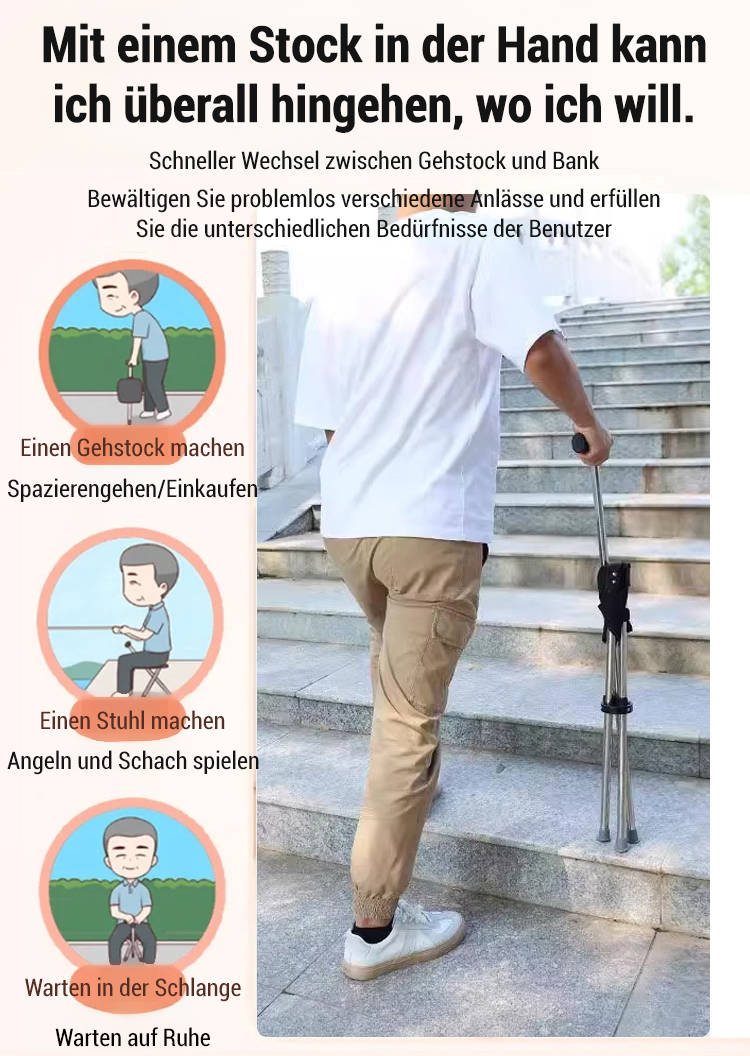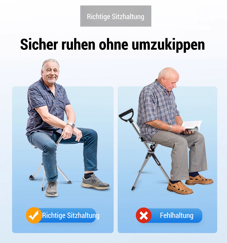Sicher Gehen und jederzeit Sitzen – mit dem empfohlenen Gehstock