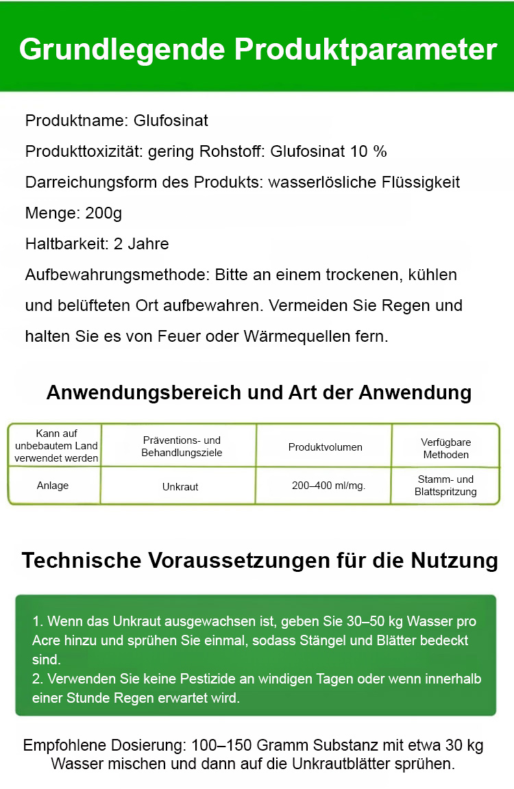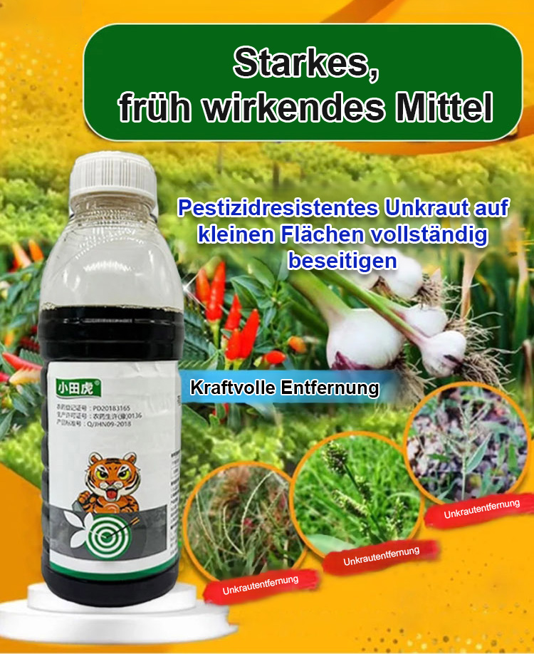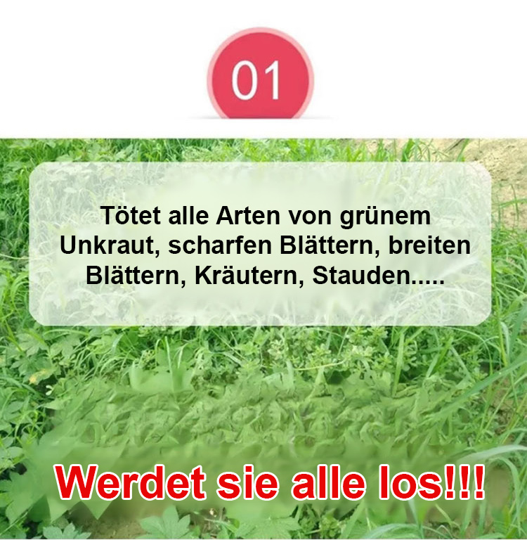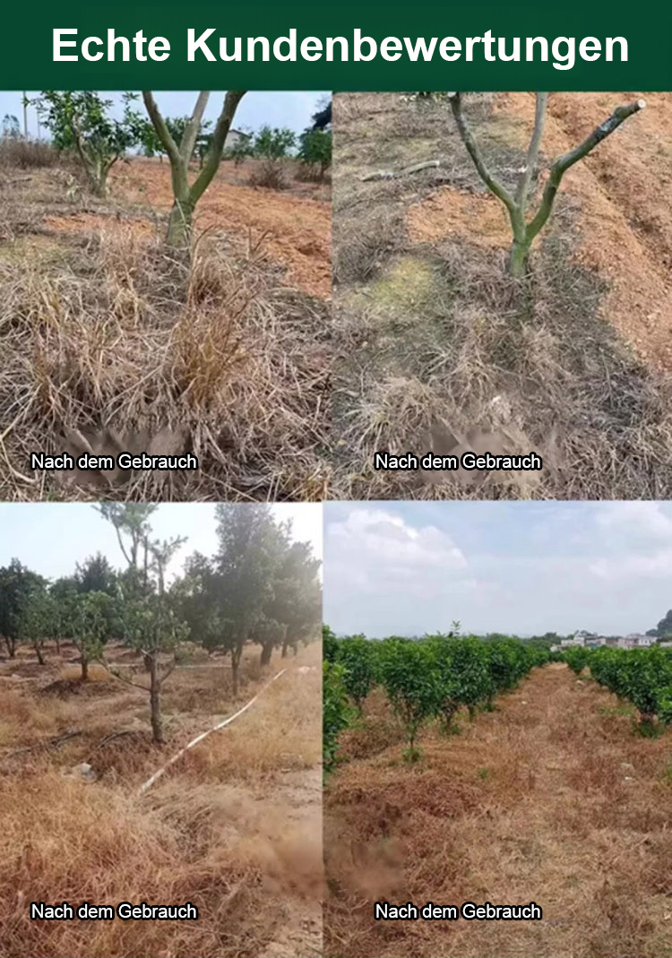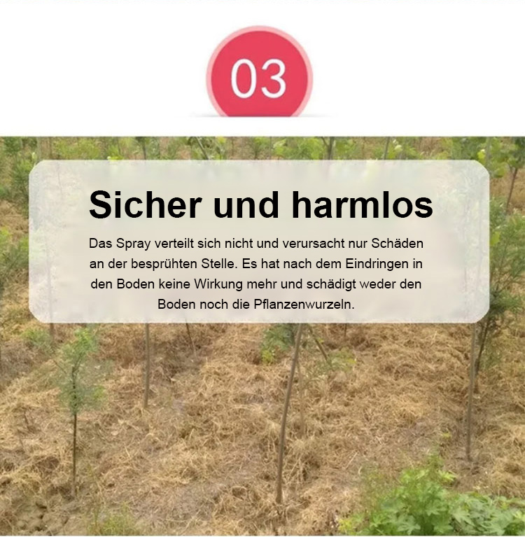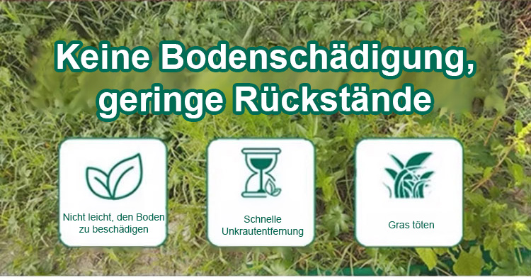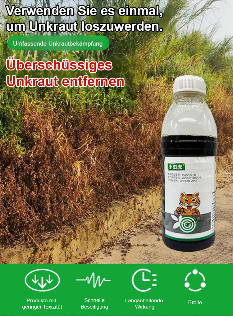 Eine gründliche Unkrautbeseitigung, die dem Boden nicht schadet – eine Flasche reicht für 3 bis 5 Morgen Land.