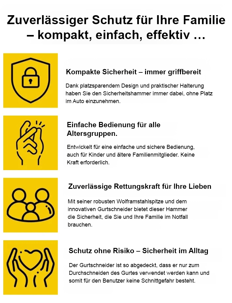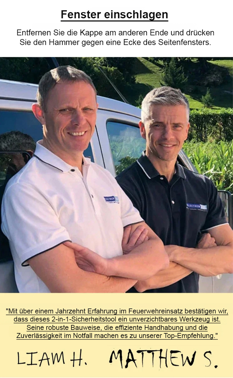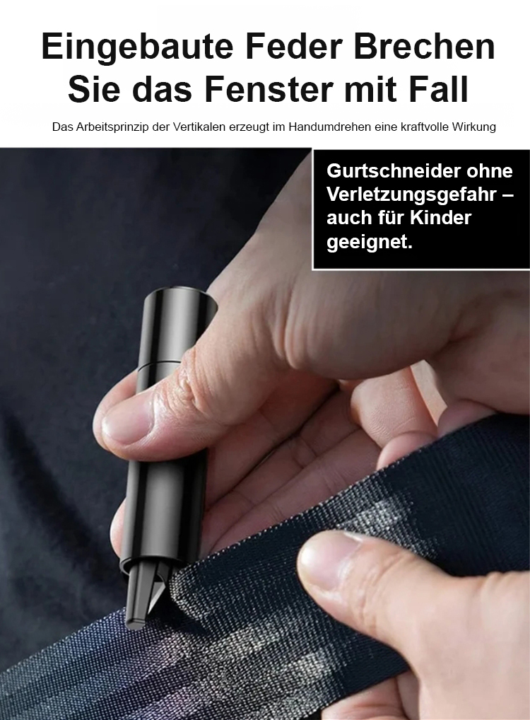 Im Notfall schnell handeln: Dieser kompakte 2-in-1-Hammer durchtrennt Sicherheitsgurte und zerschlägt Scheiben. Für mehr Sicherheit im Auto. 🚨✅