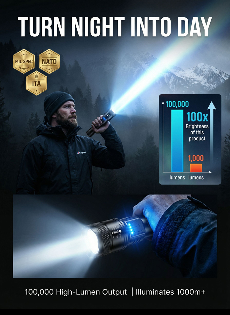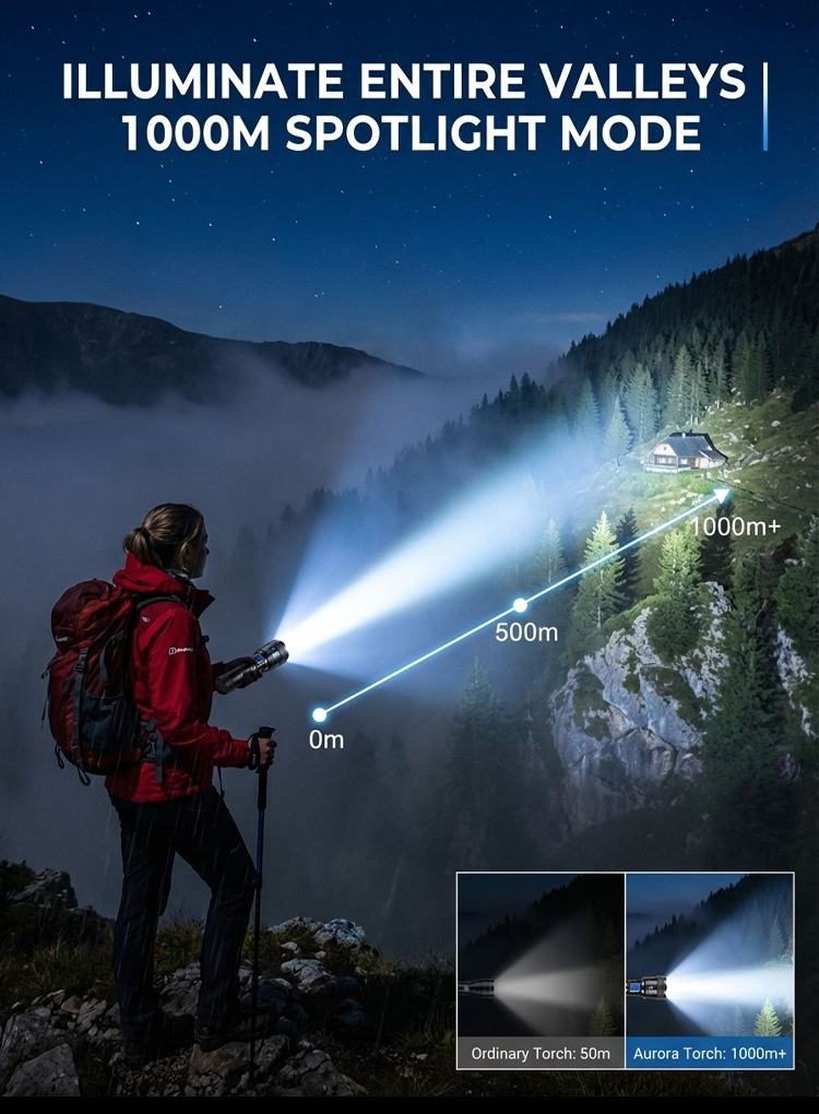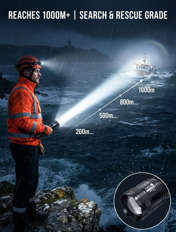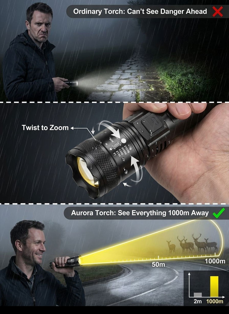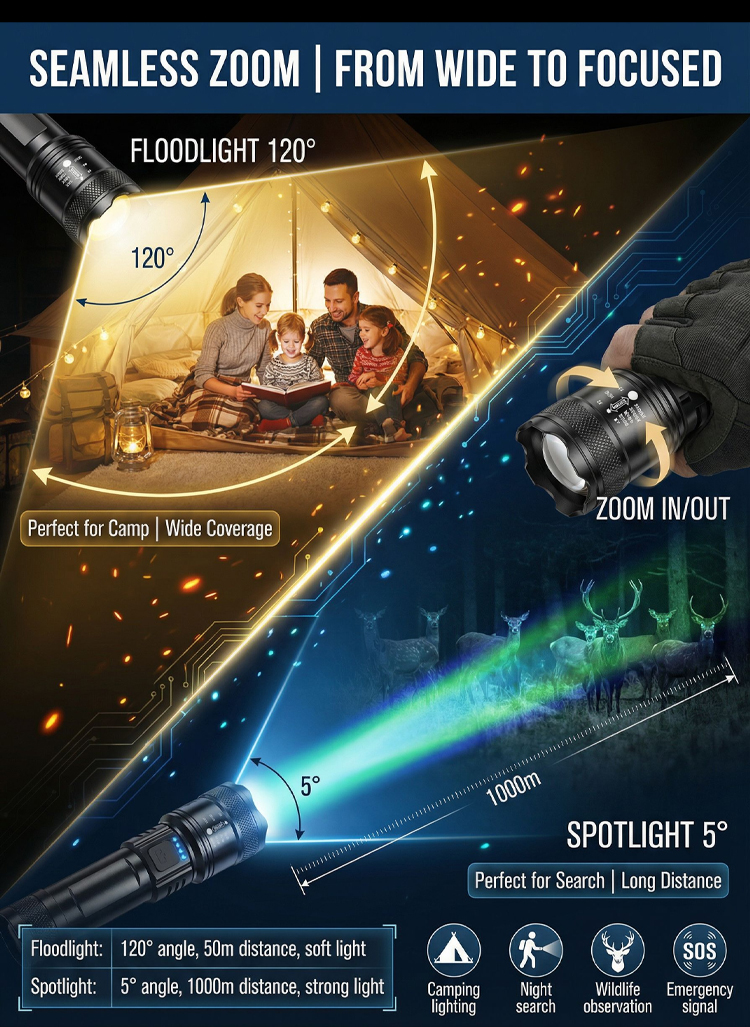 🔥Zoomable Spotlight Flashlight– 2-Mile Beam • Fire-Starting • Bear Deterrent