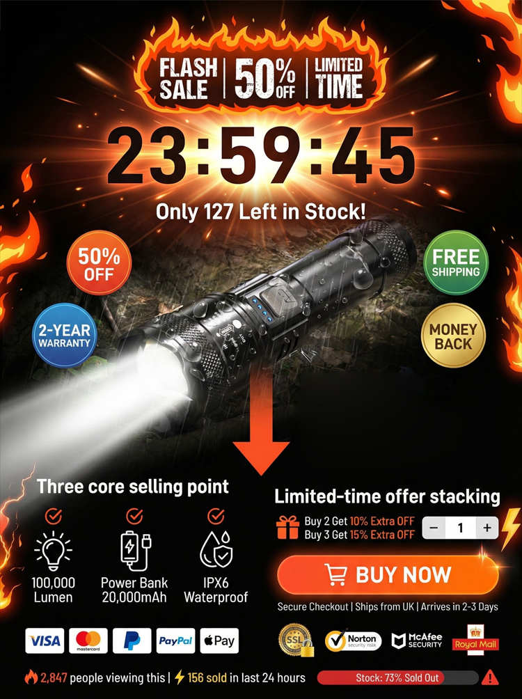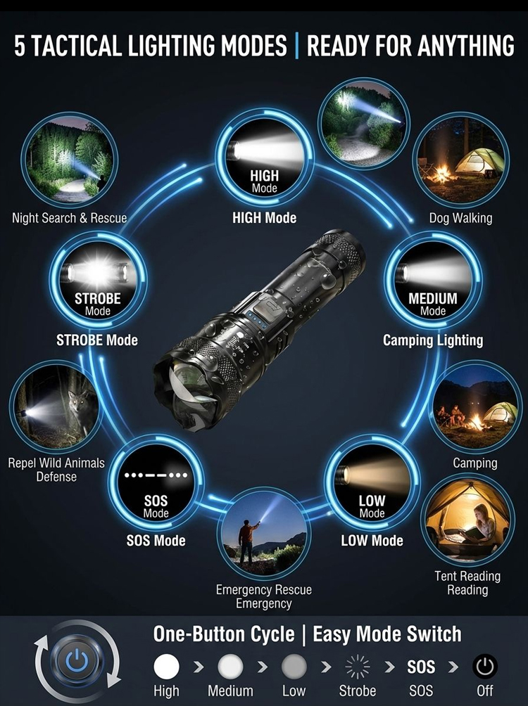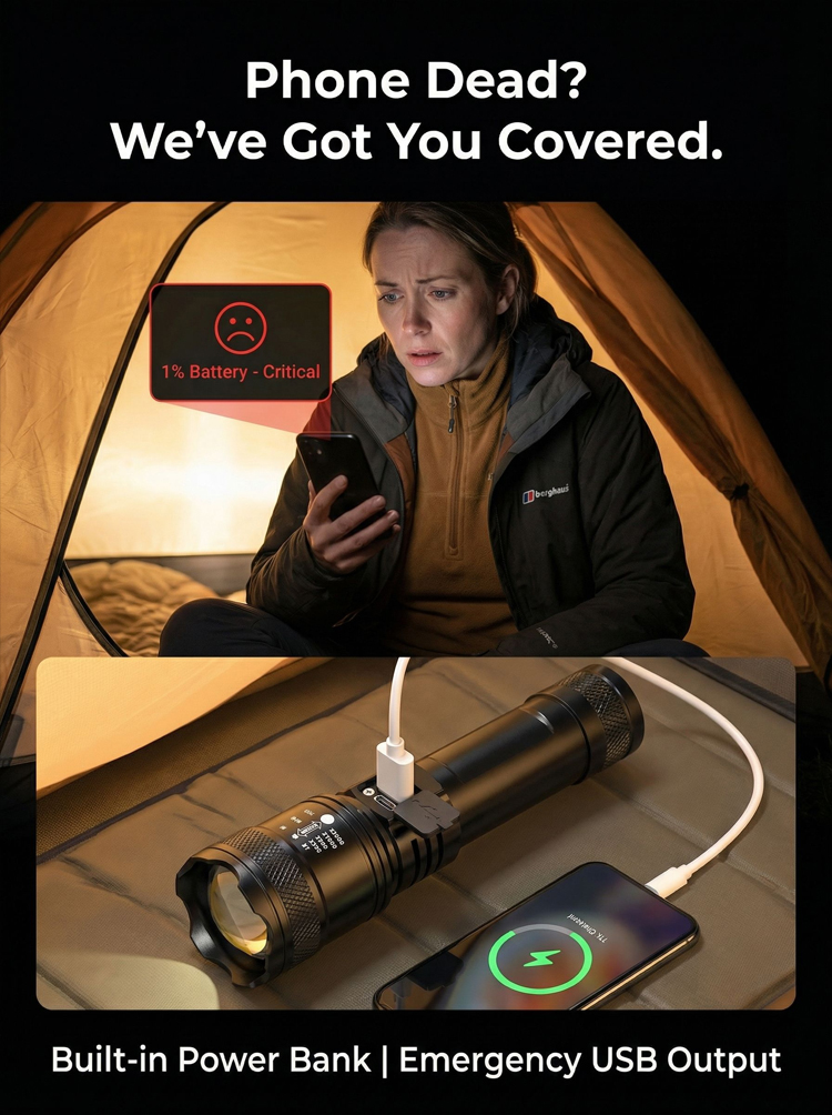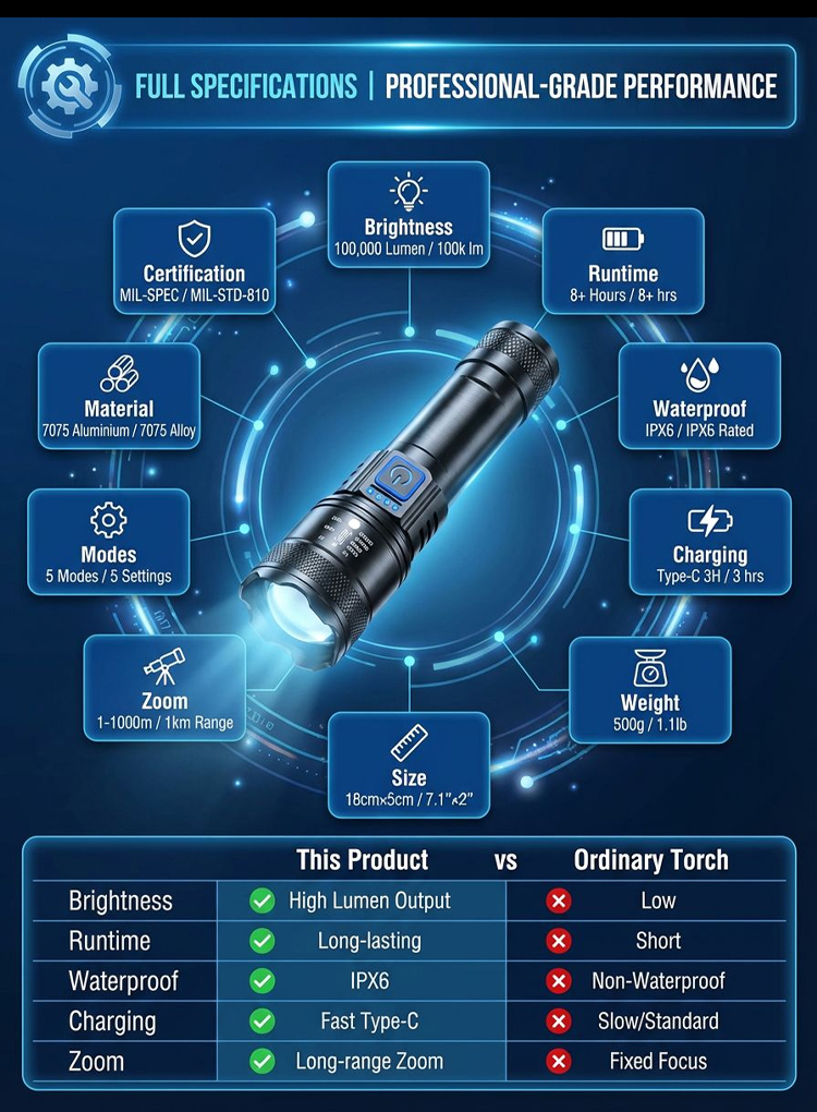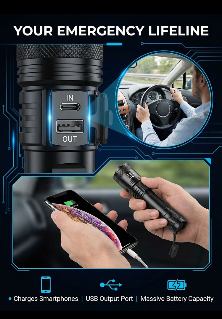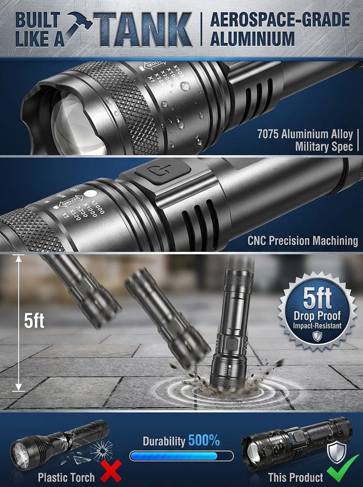 🔥Zoomable Spotlight Flashlight– 2-Mile Beam • Fire-Starting • Bear Deterrent
