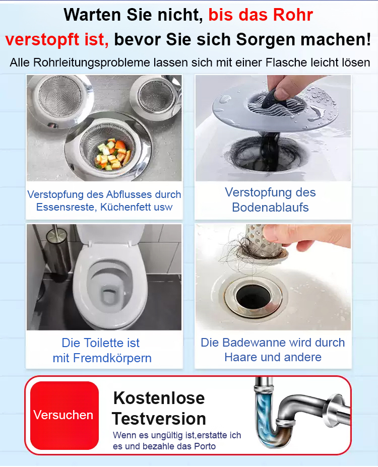 Kostenlose Probe + 50% Rabatt! Sagen Sie Verstopfungen für immer ade – Rohrreiniger mit starker Lösungskraft