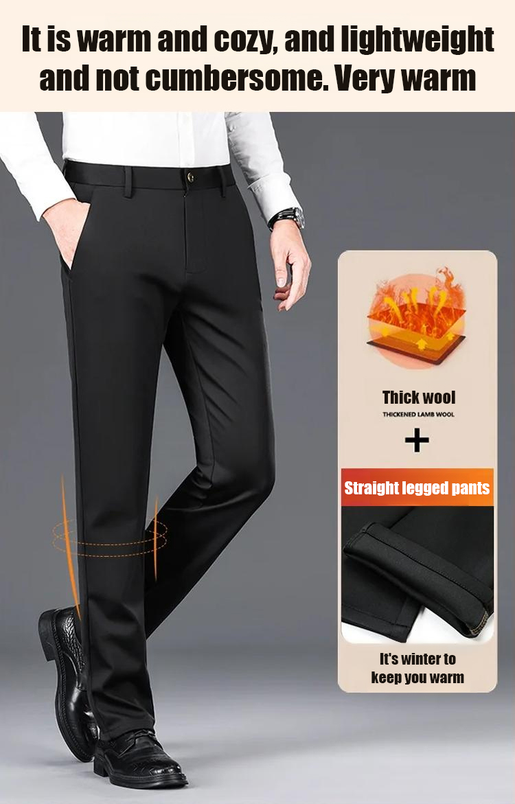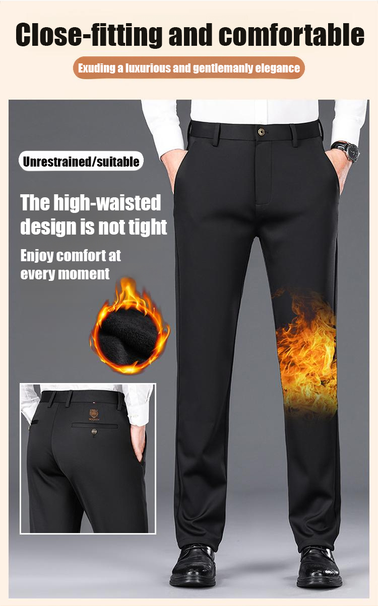 【Warm even at -30°C!】Tiger Head Embroidered Straight Leg Fleece-Lined Business Trousers for Men