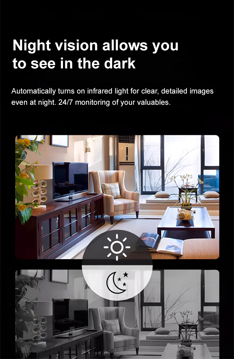 【Upgrade version: Ultra-invisible】Wireless camera. You can view and record remotely at any time. With the clear infrared night vision function, you can see clearly even in the darkest nights.