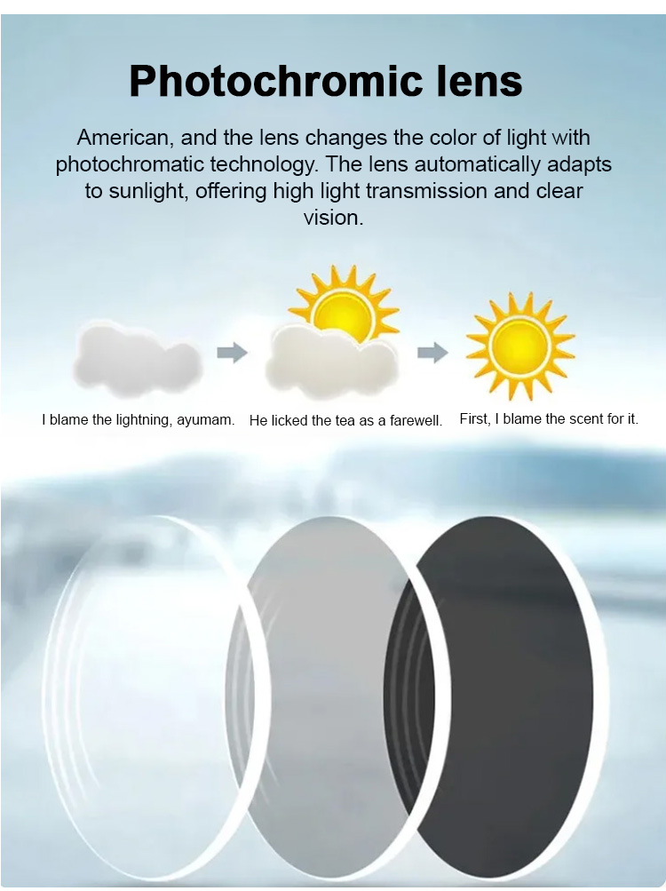 Featuring intelligent, light-sensitive photochromic lenses that automatically adjust like a precision instrument, instantly switching to sunglasses mode to block intense glare and harmful light.