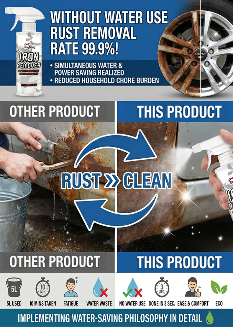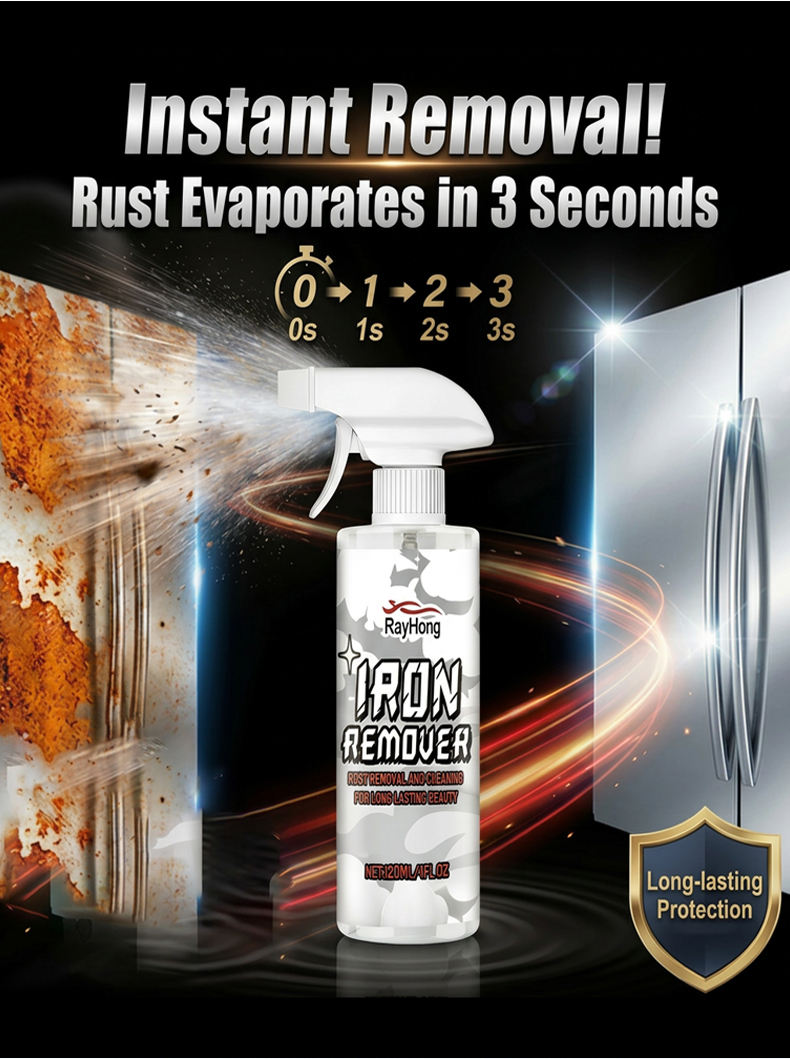 ⏱️ 3 seconds: spray → rust & water stains dissolve → evaporate clean